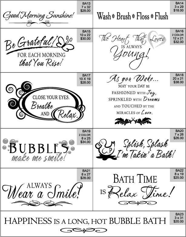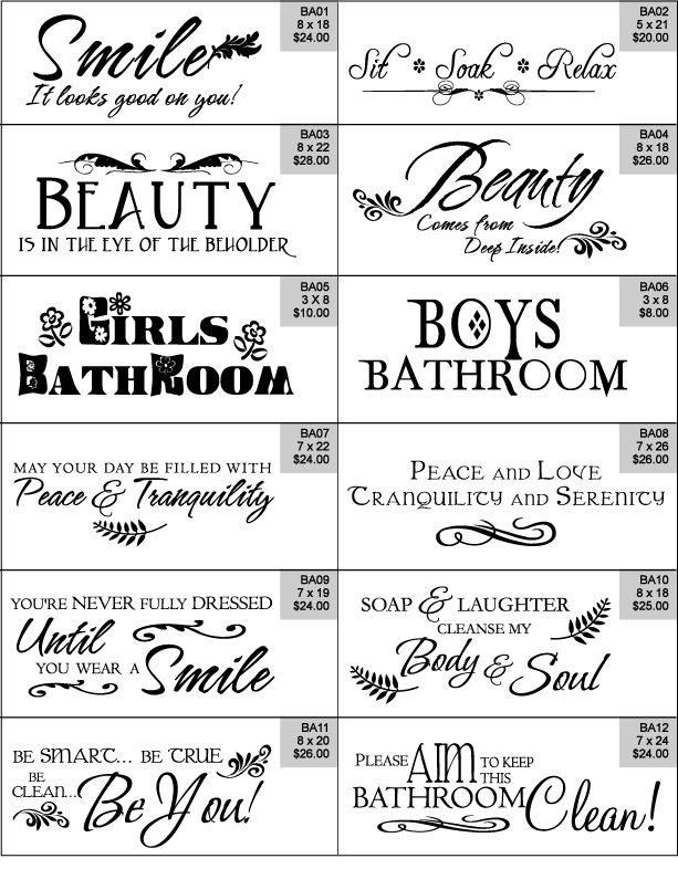 Bathroom - Pre-Designed Decals Top 2 Decals Ordered: BA01 & BA09