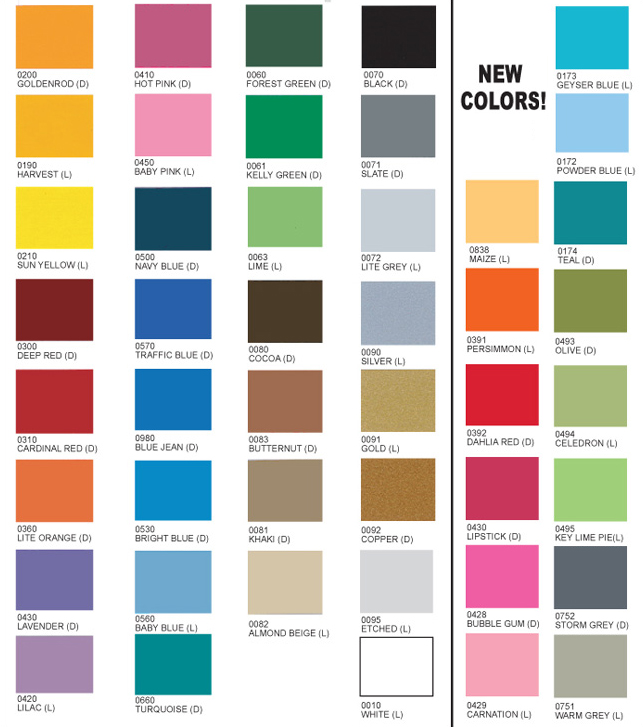 When ordering a 2 color vinyl overlay, choose a light color (L)